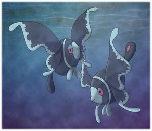 - SD Dieses Pokémon lebt auf dem Grund der Tiefsee und lockt Beute an, indem es die Muster auf seinen vier Rückenflossen aufleuchten lässt.