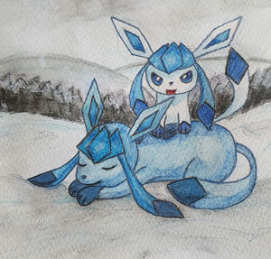Als Glaziola Tropfen auf seinem Kopf spürte, blickte es nach oben und sah, dass sich das schmelzende Eis seiner Trainerin auf seinem Fell ausbreitete. Akut verlor es die Beherrschung und nach einem wütenden Schrei hüllte es seine Umgebung in glitzernden Diamantstaub. Zwei überraschte Augenpaare blickten nun das lächelnde Glaziola an. Endlich hatte es sich Gehör verschafft!