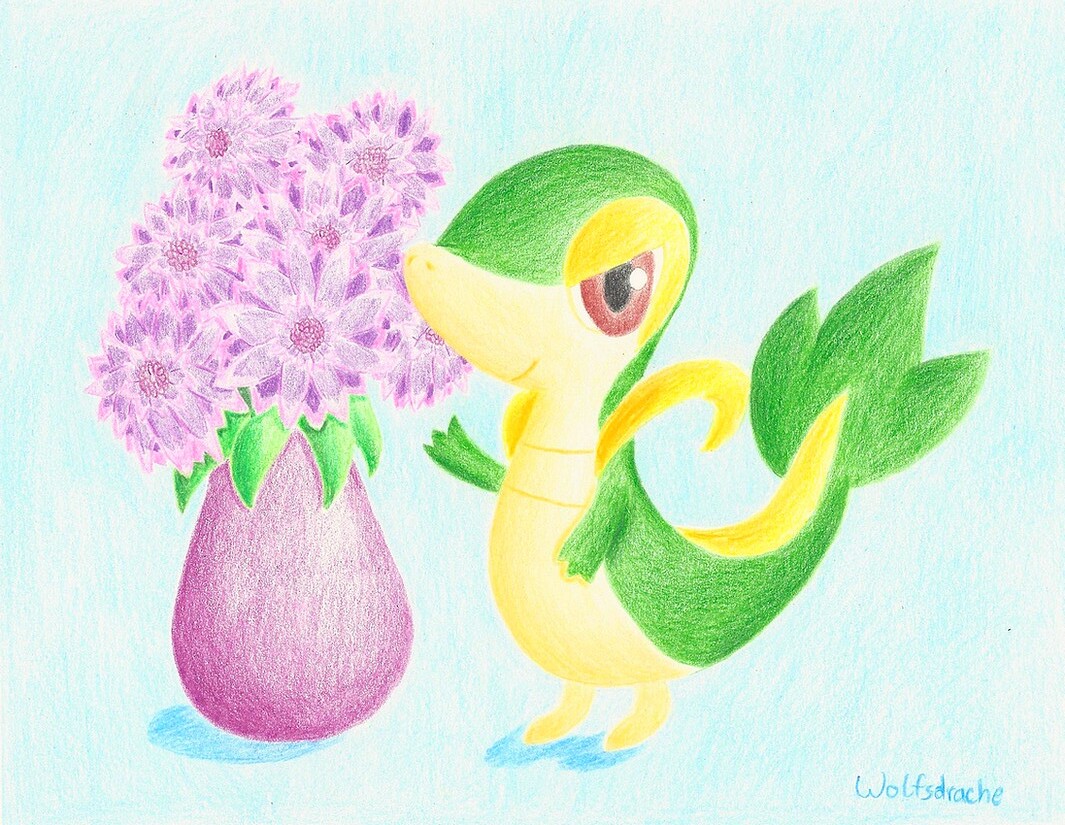 Das Licht bahnte sich seinen Weg zu Serpifeu. Während es sich in einem von der überdachten Veranda hängenden Blumentopf im Schatten ausruhte, hing sein Schweif locker herab. Die Energie der Sonne machte sich in seinem Körper breit und half ihm, in der Ruhe klar zu denken. In einiger Entfernung war lediglich die verzweifelte Stimme seines Trainers zu hören. Serpifeu wandte sich ihm zu und sah, dass er Probleme hatte, einen Blumenschmuck aufzuhängen. Ohne sich zu bewegen verwendete es seine Ranken, um ihm die Arbeit abzunehmen und das Ornament richtig zu platzieren. Nach einem Dankeschön widmete sich Serpifeu erneut seinem Nickerchen.