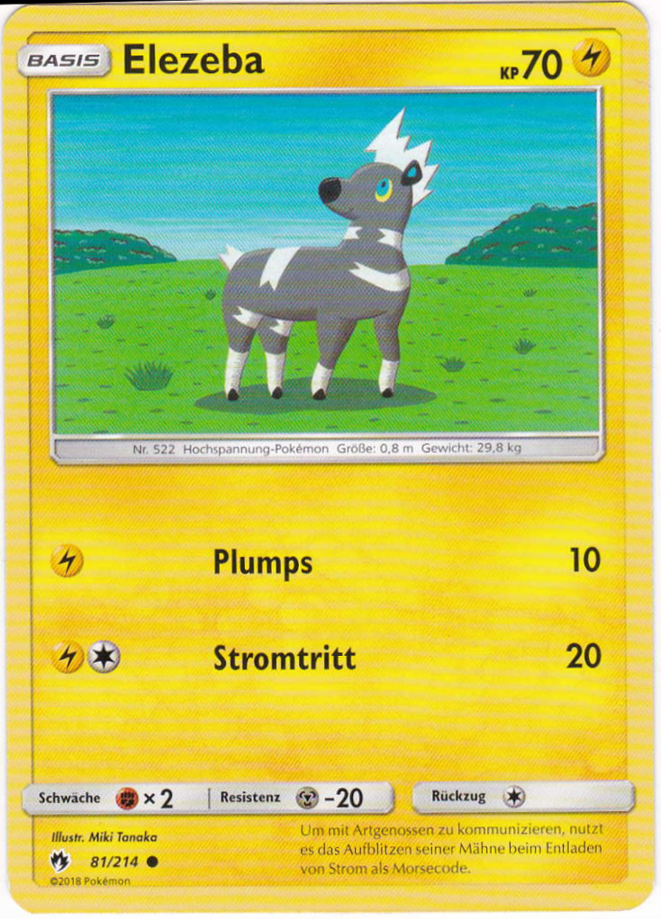 - K Der Herzschlag dieses Pokémon generiert Strom. Erschrickt es, steigt seine Herzfrequenz und somit auch die elektrische Spannung.