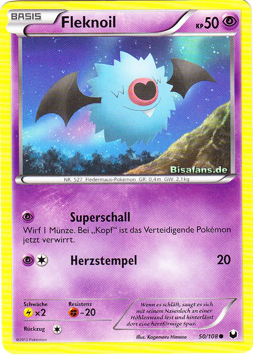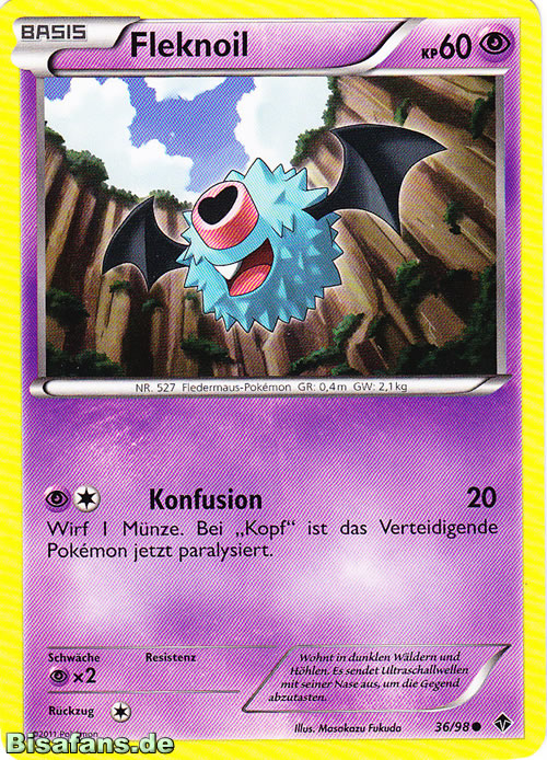 - SH Es fliegt umher und sendet Ultraschallwellen aus, um Käfer-Pokémon aufzuspüren, welche ihm als Nahrung dienen.