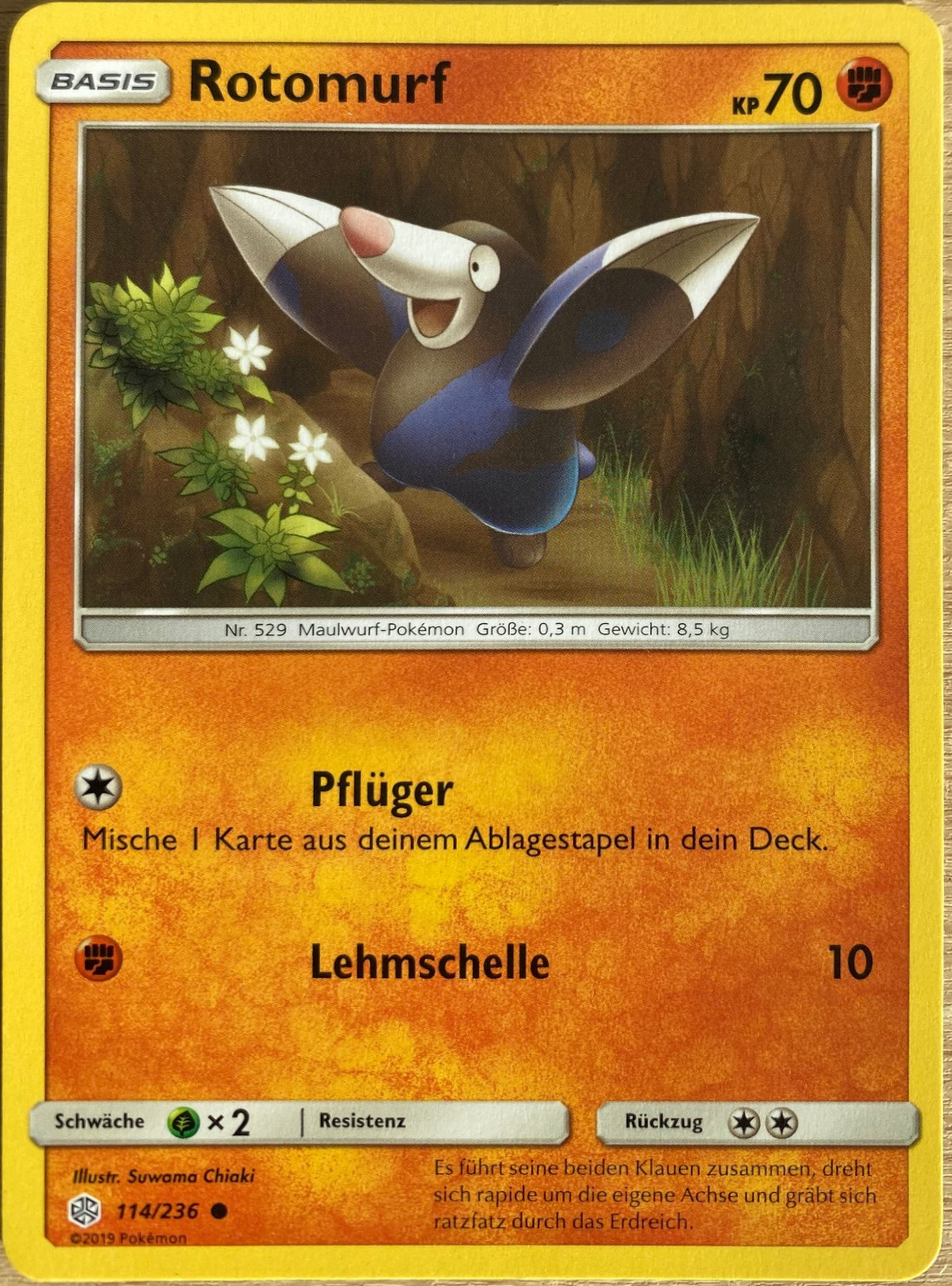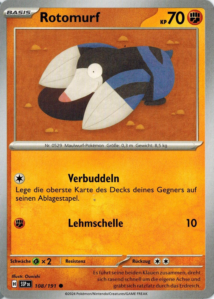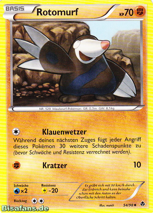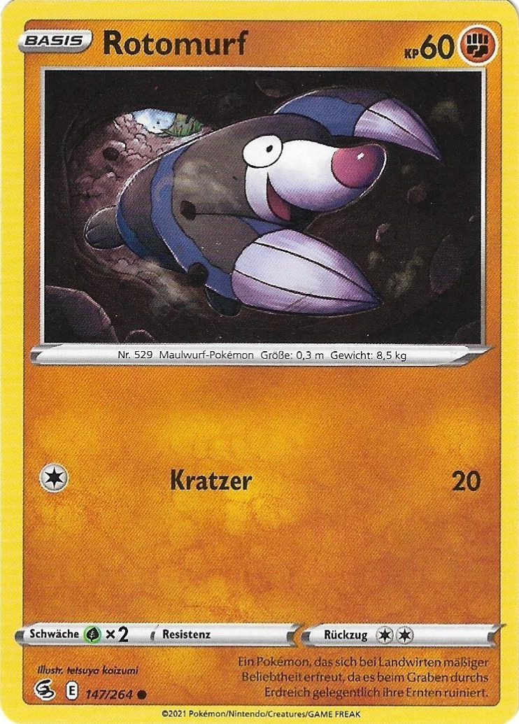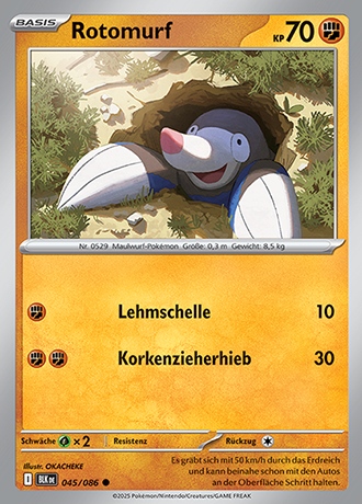 - SH Ein Pokémon, das sich bei Landwirten mäßiger Beliebtheit erfreut, da es beim Graben durch Erdreich gelegentlich ihre Ernten ruiniert.