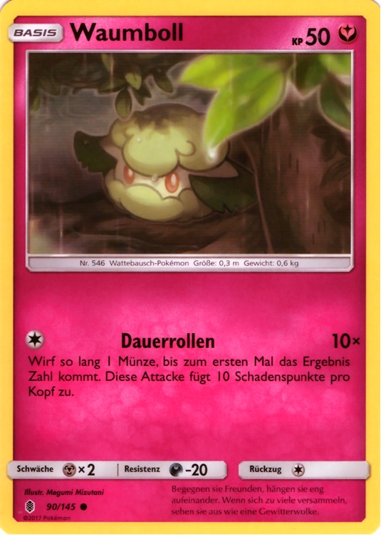 - S Wird es angegriffen, verstreut es zur Täuschung Watte. Es flieht, während der Gegner nach dem wahren Waumboll sucht.