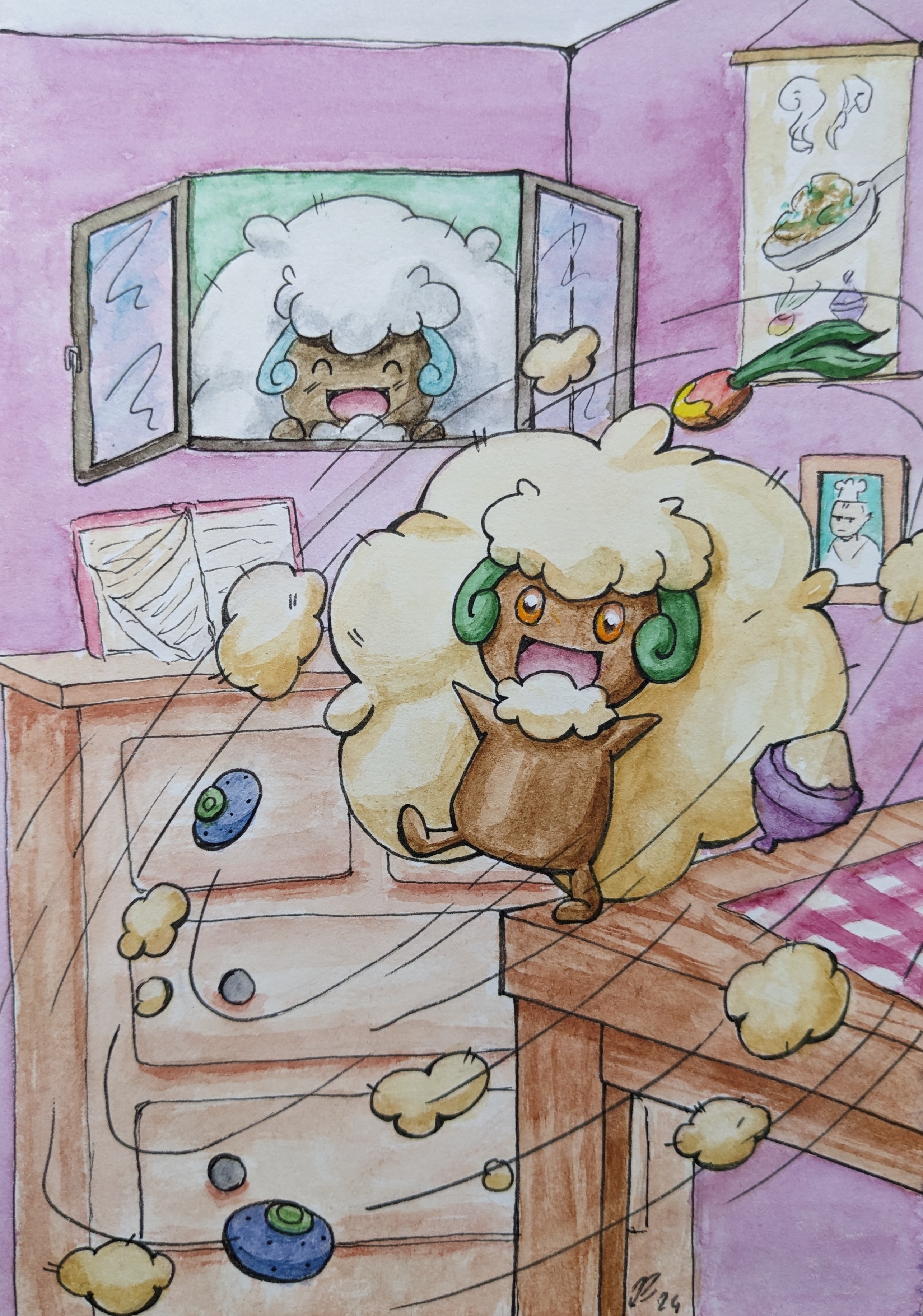 - SW Es verstreut Watte, um Leute zu ärgern. Es hört damit auf, wenn es nass wird, weil es dann zu schwer ist und sich nicht mehr bewegen kann.