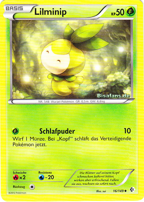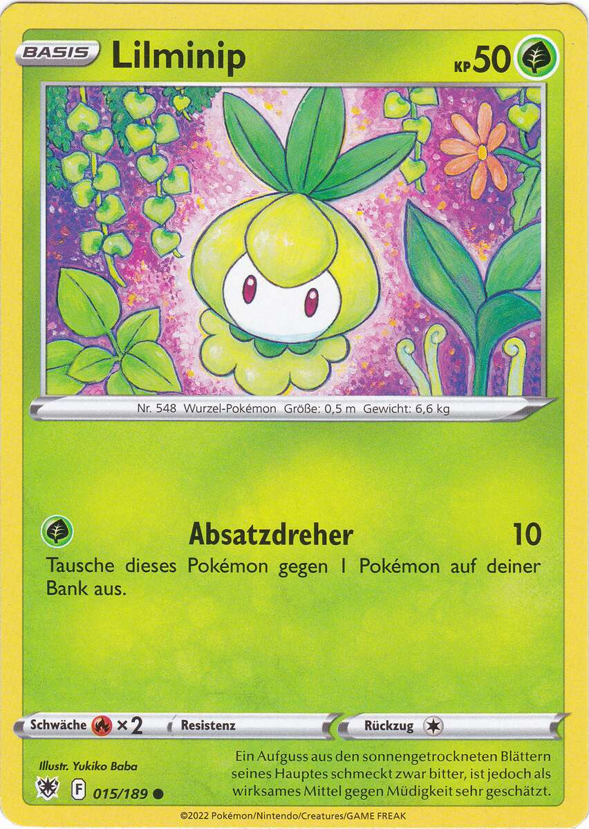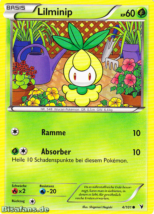 - SWRI Lilminip hält sich unweit von sauberem Wasser auf. Ein Aufguss der Blätter auf seinem Kopf wird auch als Mittel gegen Käfer-Pokémon eingesetzt.