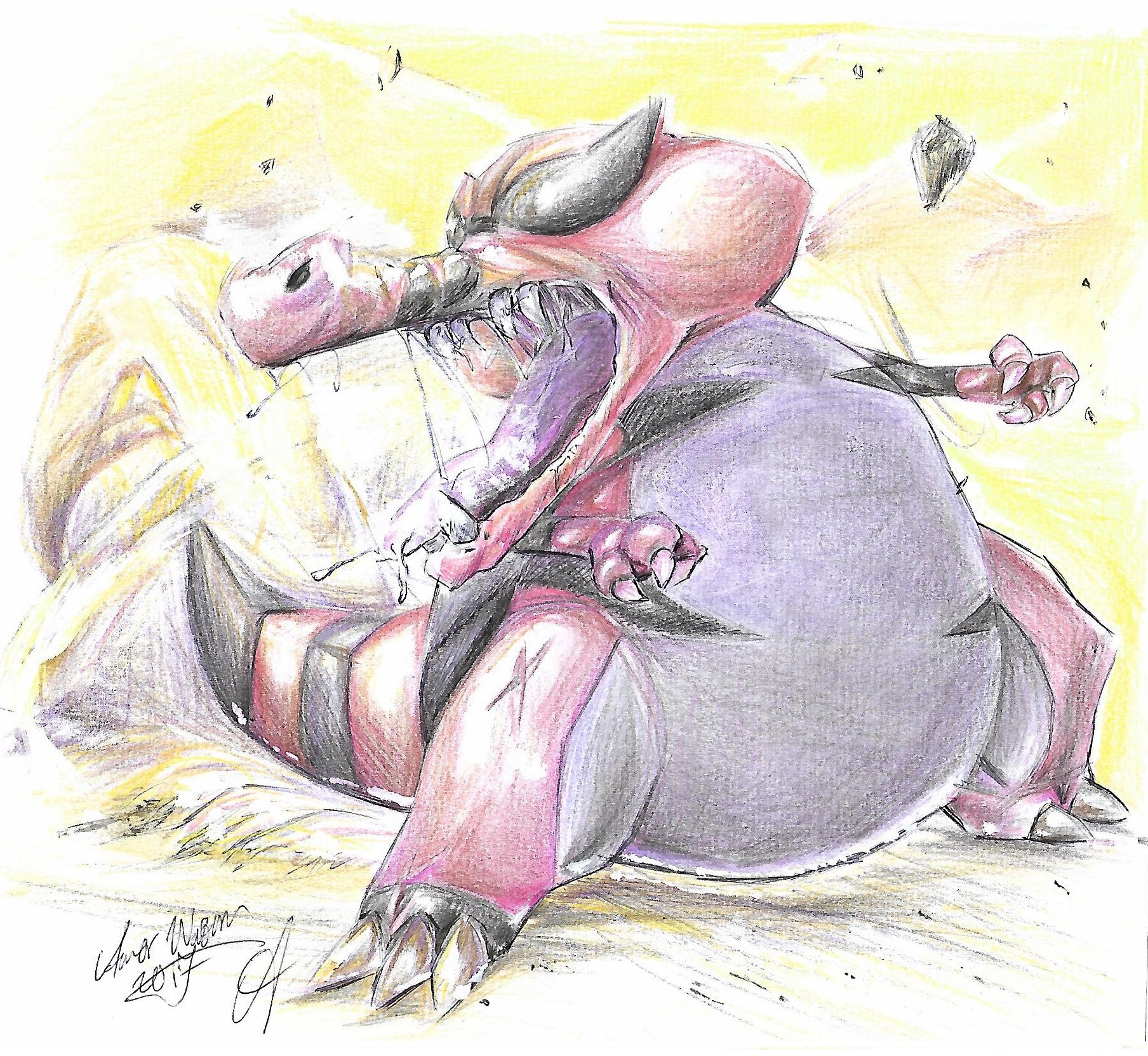 - OR Ein äußerst grausames Pokémon. Es greift jeden, der ihm unter die Augen kommt, mit seinen scharfen Reißzähnen an.
