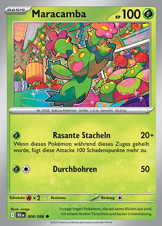 - SW Es erzeugt Laute, die dem Klang von Maracas ähneln, und weiß sich Vogel-Pokémon mit flotten Rhythmen vom Leib zu halten.