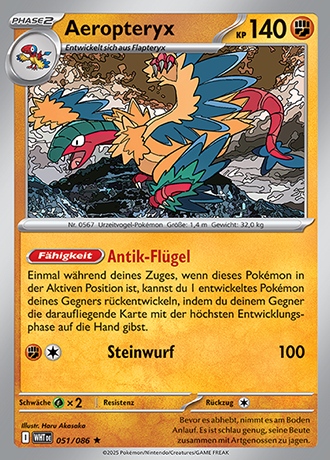 - US Aufgrund seines feinen Gefieders glückt die Zurückverwandlung dieses urzeitlichen Pokémon nur Experten mit langjähriger Erfahrung.