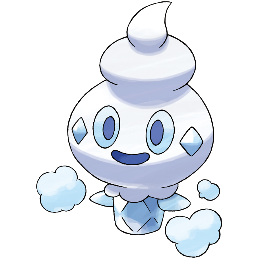 - S Dieses Pokémon ist aus einem Eiszapfen entstanden. Mit seinem kalten Odem erzeugt es Eiskristalle und lässt es schneien.