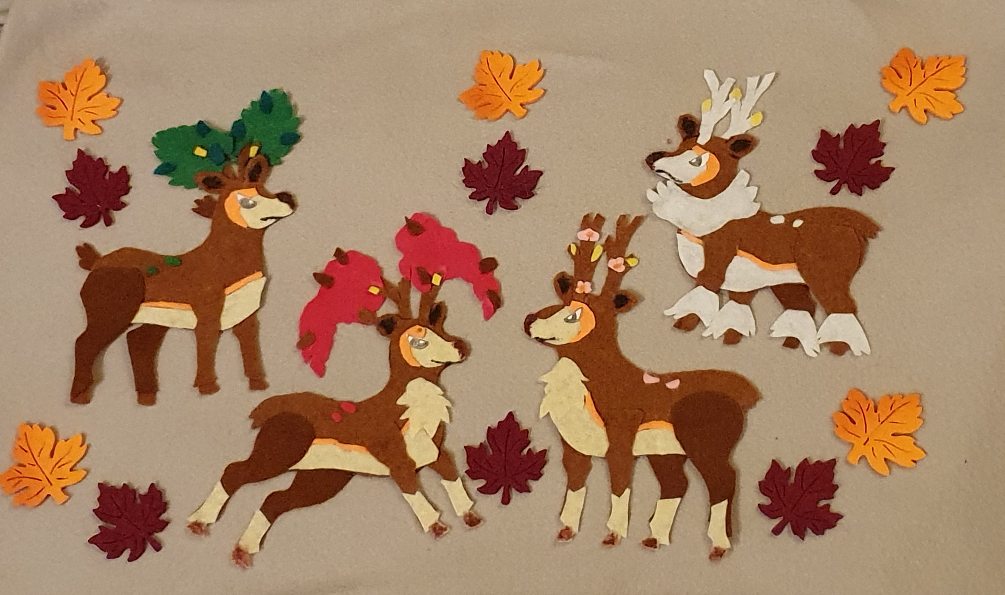 Verspielt tanzte eine Brise durch das grüne Blättergeweih des ersten Kronjuwilds. Als hätte es einen ganz bestimmten Punkt überschritten, vollführte es plötzlich eine Wandlung. Innerhalb einer kurzen Zeitspanne veränderte sich die Farbe der Blätter zu einem kräftigen Rotbraun. Ein Blick zurück zeigte ihm, dass auch die anderen Pokémon von diesem Phänomen betroffen waren.