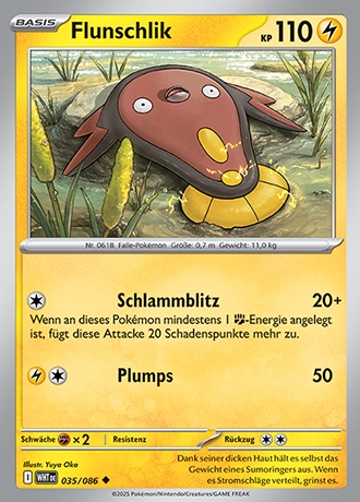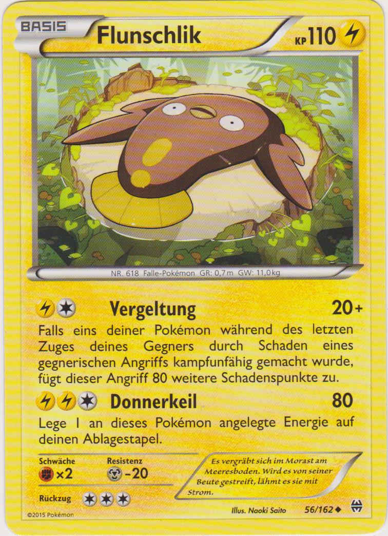 - SW Dieses Pokémon lebt im Morast. Dank der dortigen Bakterien hat es ein Organ entwickelt, mit dem es Strom erzeugen kann.