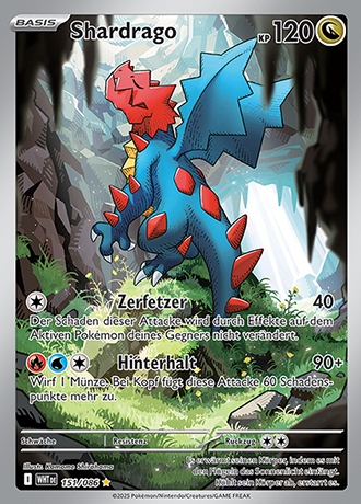 - SHKS Shardrago ist grausam und gerissen. Es nimmt die selbstgegrabenen Höhlen anderer Pokémon ein, um sie zu seinem Unterschlupf zu machen.