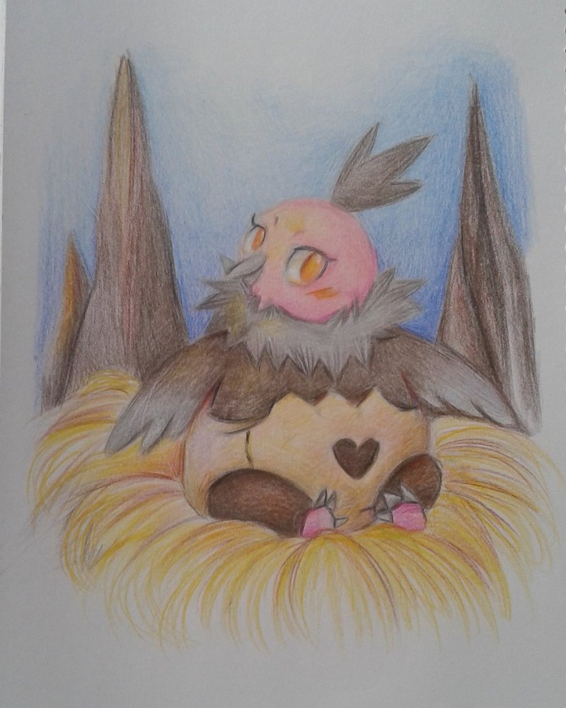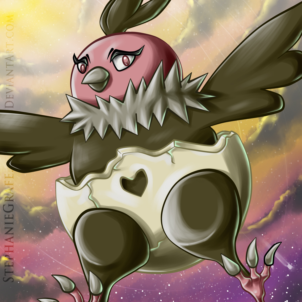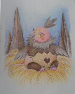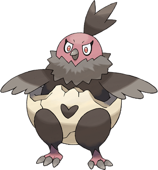 - M Dieses Pokémon ist noch sehr verspielt. Seine Flügel sind noch zu klein zum Fliegen, es kann sich also nur hüpfend fortbewegen.