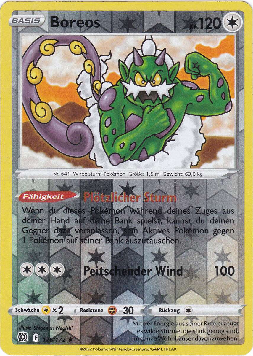 - Boreos ursprüngliches Design sah laut einem Interview mit Ken Sugimori in der Nintendo Dream vor, dass es rot werden soll und damit einen Gegenpart zum blauen Voltolos darstellt. Das Aussehen war jedoch zu ähnlich zu Jiutesto und Karadonis, weshalb es leicht abgewandelt wurde.