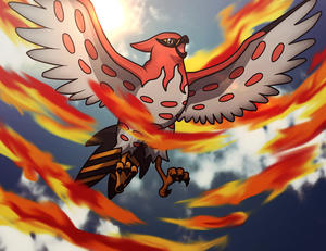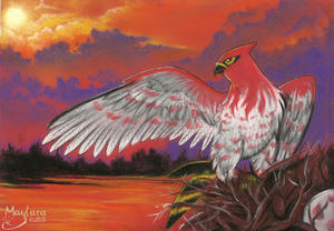 - P Ist es aufgeregt, versprüht es Funken aus den Zwischenräumen seines Gefieders. Seine Federn werden als feuerfestes Material verwendet.