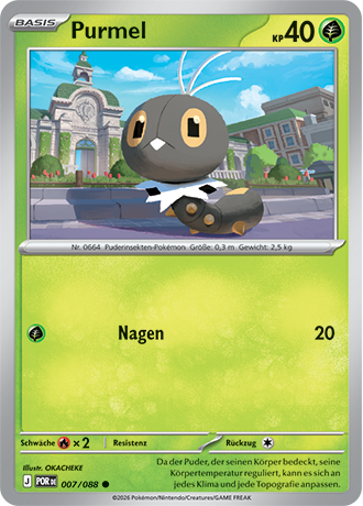 Purmel besitzt die Pokédex-Nummer #664 und ist ein Käfer-Pokémon der sechsten Generation. Seinen ersten Auftritt in Videospielen hat es in Pokémon X & Y.