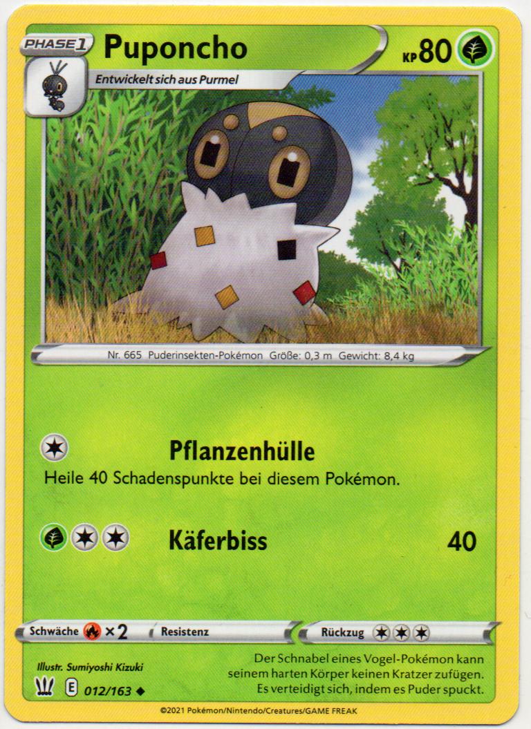 - AS Der Schnabel eines Vogel-Pokémon kann seinem harten Körper keinen Kratzer zufügen. Es verteidigt sich, indem es Puder spuckt.