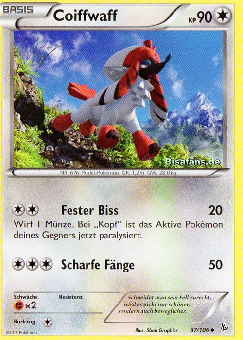 Coiffwaff besitzt die Pokédex-Nummer #676 und ist ein Normal-Pokémon der sechsten Generation. Seinen ersten Auftritt in Videospielen hat es in Pokémon X & Y.