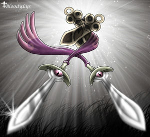 - X Bei seiner Entwicklung hat es sich in zwei Schwerter geteilt. Es begegnet seinen Gegnern mit Attacken, die es mittels Telepathie koordiniert.