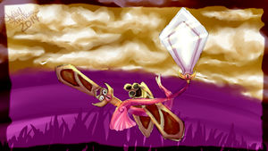 - OR Bei seiner Entwicklung hat es sich in zwei Schwerter geteilt. Es begegnet seinen Gegnern mit Attacken, die es mittels Telepathie koordiniert.
