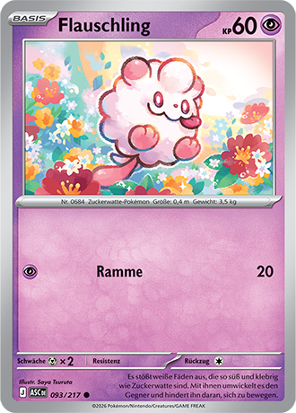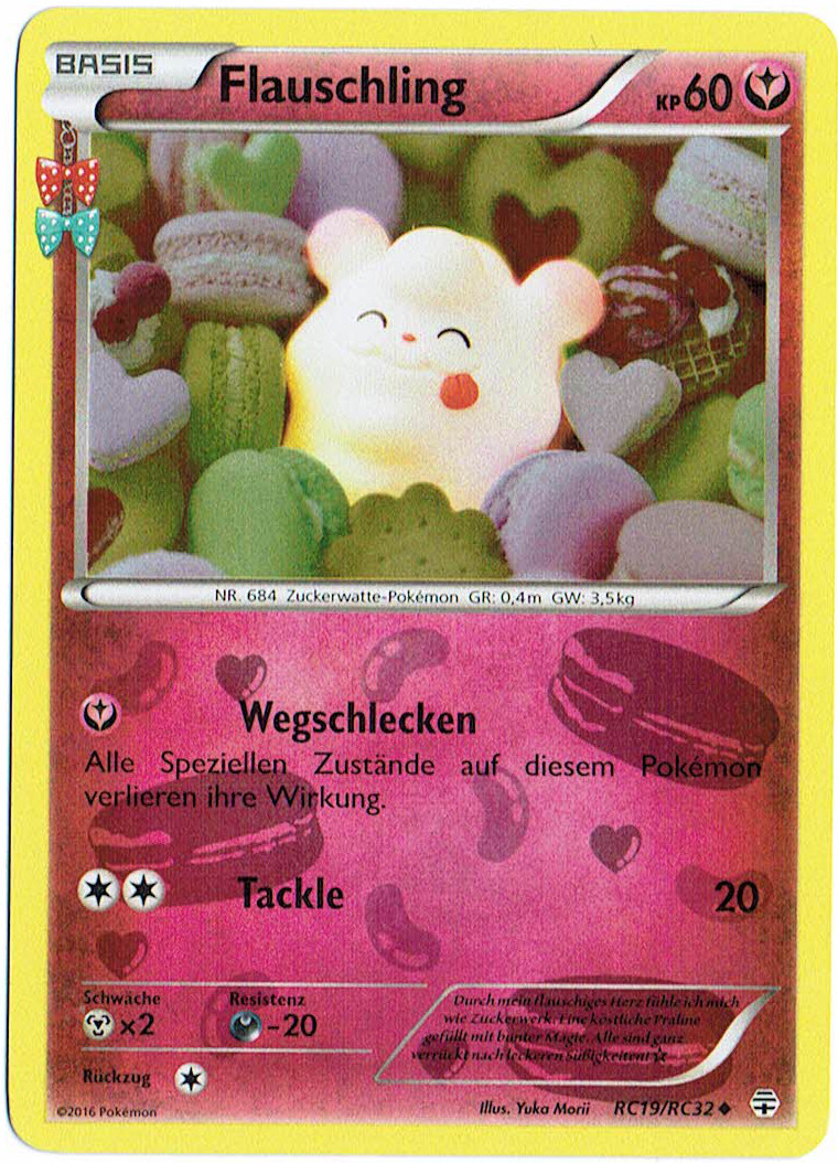 - SH Sein flauschiges Fell duftet süß wie Zuckerwatte. Es stößt klebrige Fäden aus, mit denen es seine Gegner umwickelt.