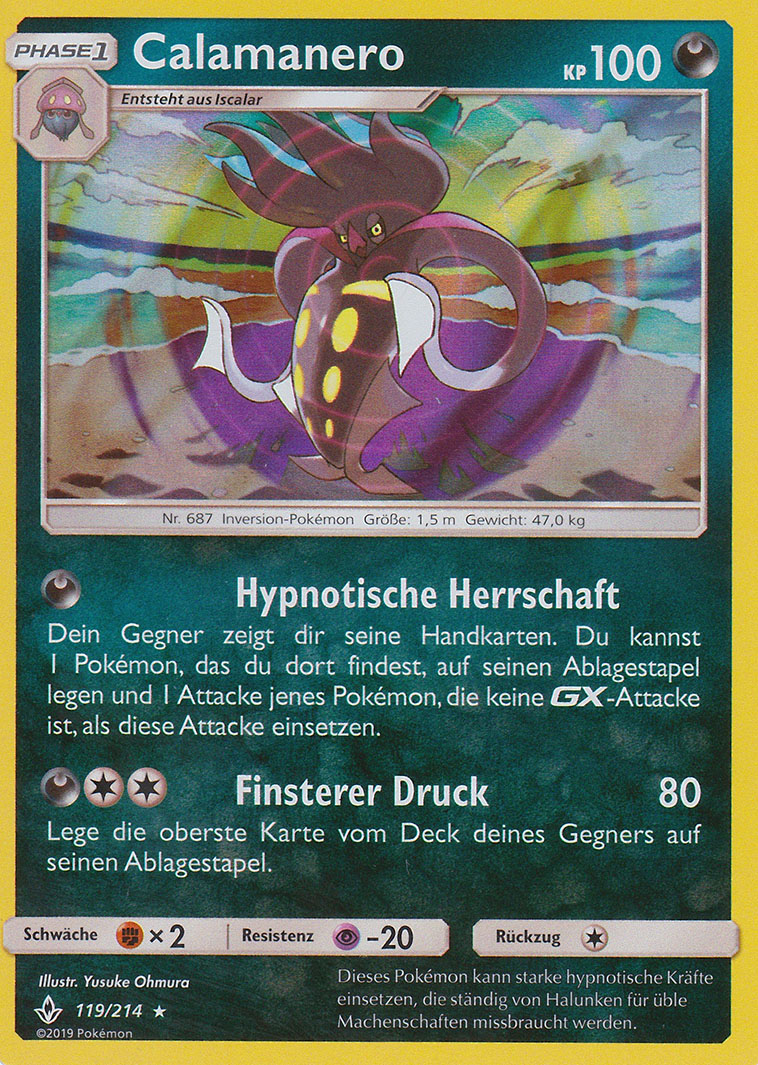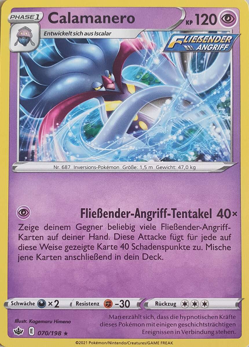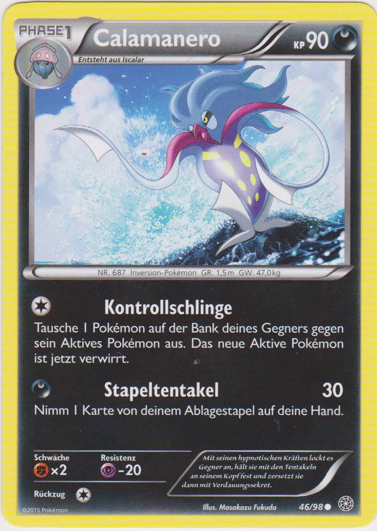 - X Calamanero entwickelt sich aus Iscalar. Von allen Pokémon verfügt es über die stärksten hypnotischen Kräfte und kann seine Gegner nach Belieben kontrollieren.