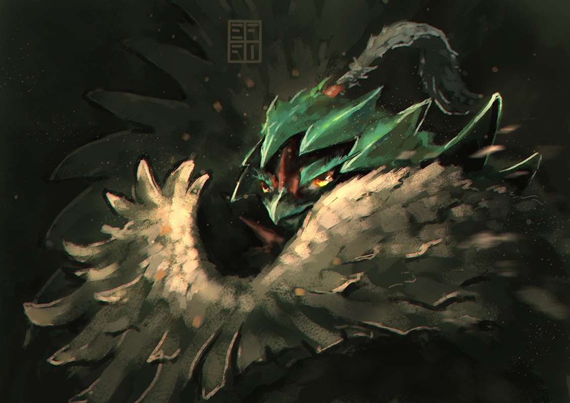 - P Es legt seine Federpfeile an, um sie auf Gegner zu schießen. Muss ein Schuss sitzen, zieht es zur Fokussierung an den Ranken an seinem Hals.