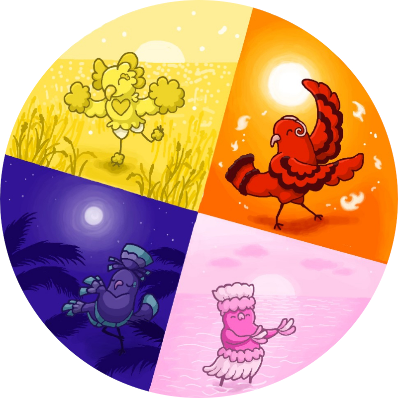 Choreogel hielt die Flügel steil nach oben und vollführte schnelle Tanzschritte auf der Bühne. Das Feuer in ihm loderte auf und durch die raschen Bewegungen begann die Luft bereits zu sengen. Es verinnerlichte die temperamentvolle Musik und projizierte sie in seinen Tanz. Als Choreogel die nächste Phase der Show einleiten wollte, wirkte sein Trainer nervös. Eine falsche Anweisung folgte und brachte es völlig aus dem Takt. Ein empörtes Zwitschern entkam seiner Kehle, woraufhin sich sein Trainer verlegen am Hinterkopf kratzte.