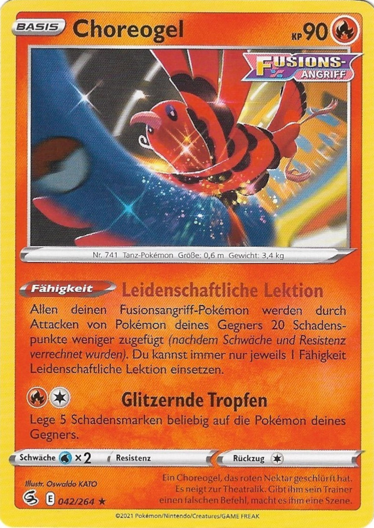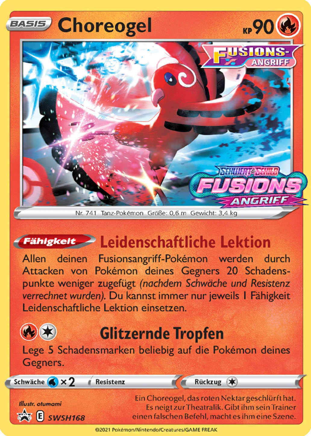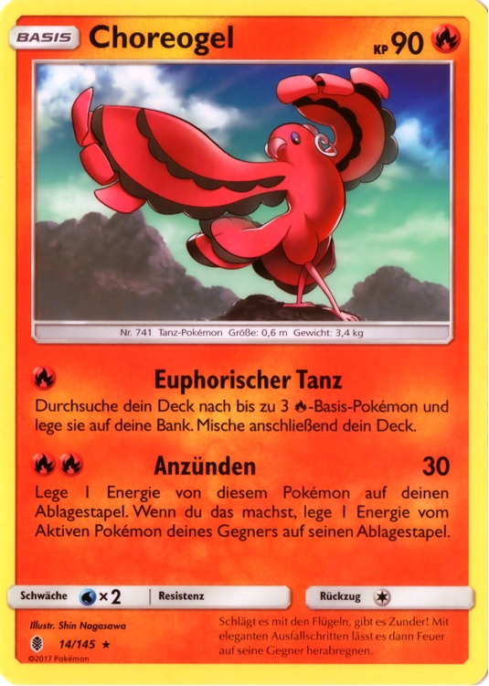 - M Ein Choreogel, das roten Nektar geschlürft hat. Mit seinen hitzigen Tanzschritten versengt es Körper und Geist eines jeden Gegners.