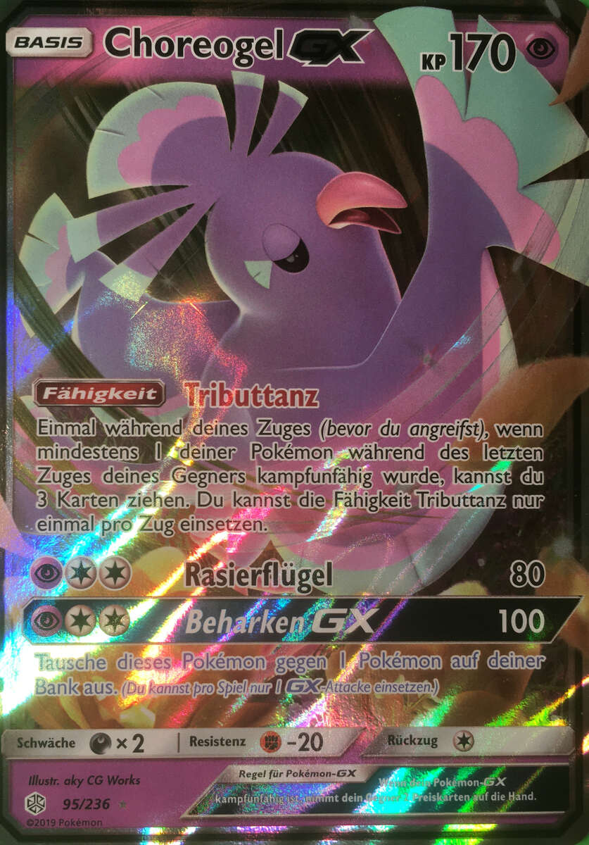 - S Ein Choreogel, das purpurnen Nektar geschlürft hat. Mit seinem anmutigen Tanz entführt es seine Gegner buchstäblich in eine andere Welt.