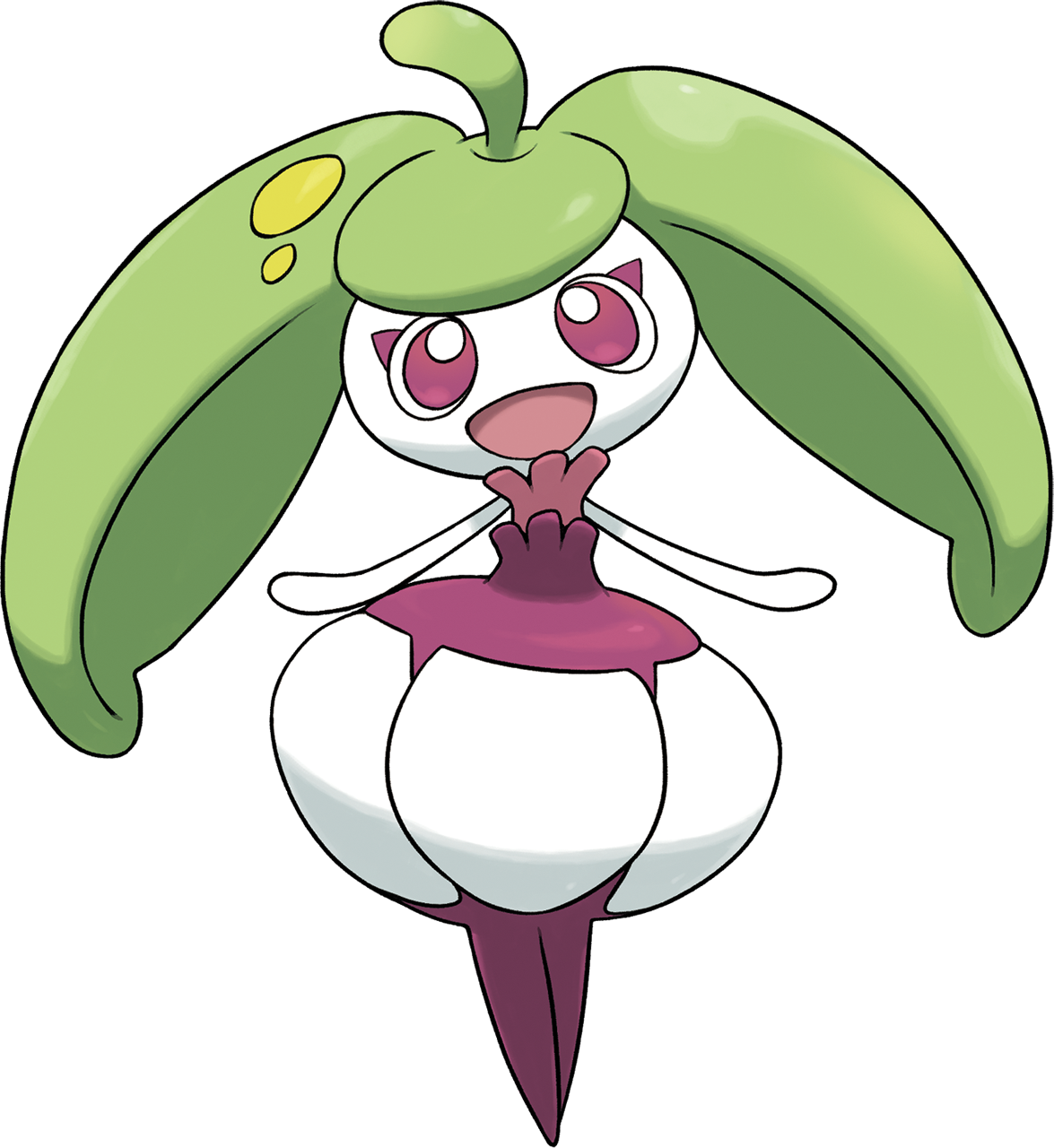 - M Es hüpft immerzu fröhlich umher. Seine lebensfrohe Art und sein Wohlgeruch ziehen Pokémon in der Nähe förmlich an.