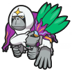 - SWRI Mit dem Fächer, den es aus Blättern und Fell gebaut hat, kommandiert es andere Pokémon herum. Er symbolisiert seine Befehlsgewalt.