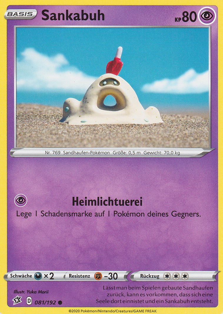 - S Der Groll eines verstorbenen Reisenden fuhr in einen Sandhügel, den ein Kind gebaut hatte, und brachte dieses Pokémon in die Welt.