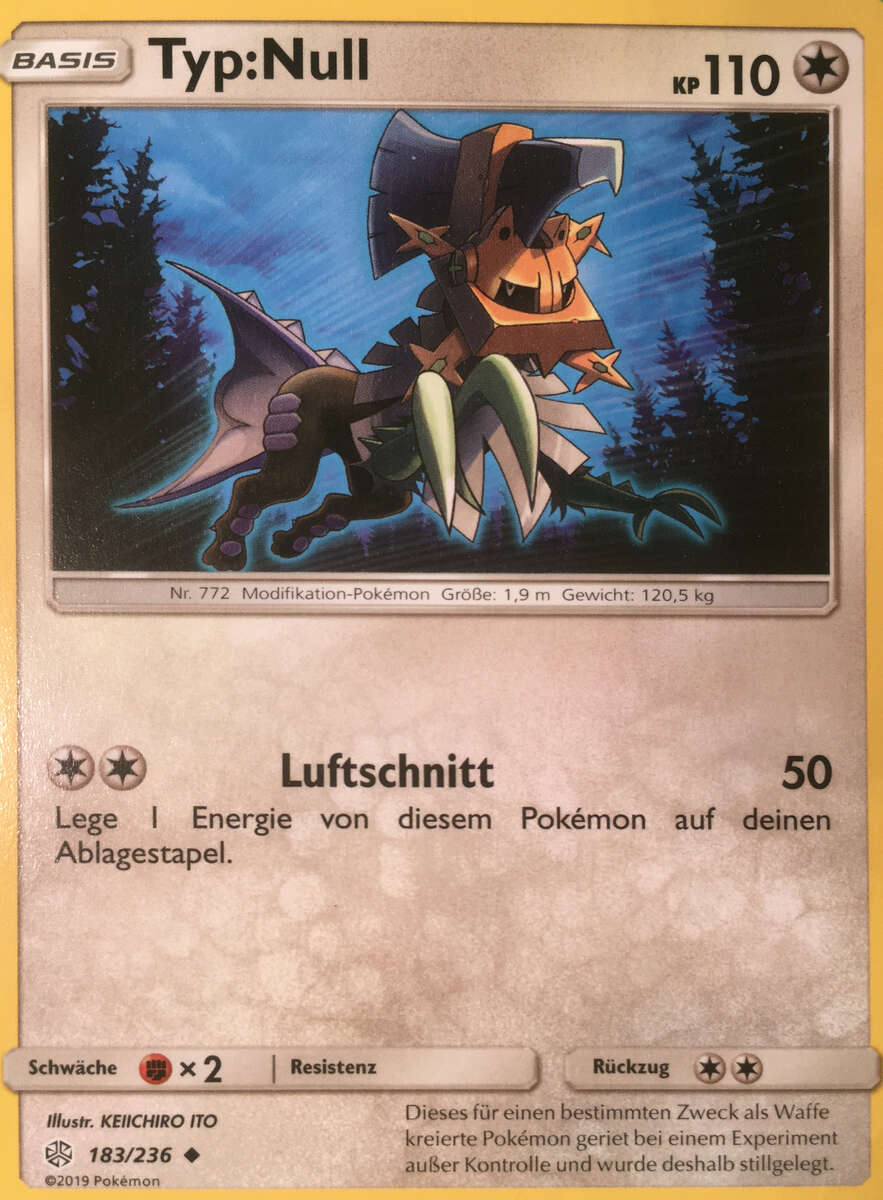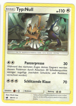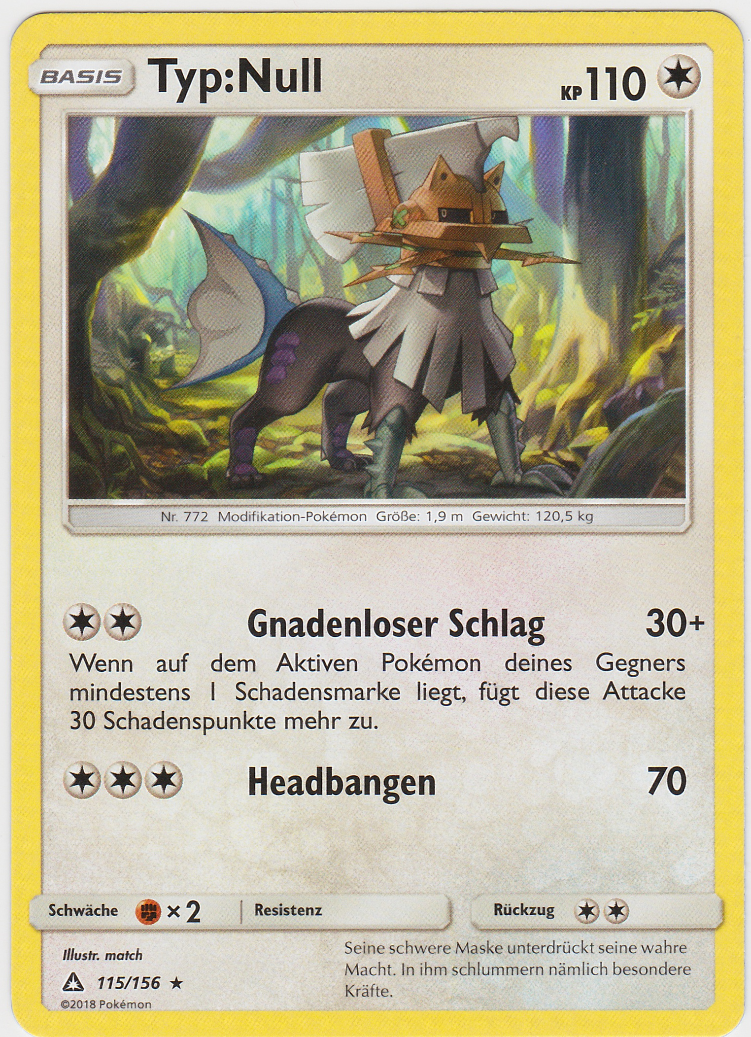 - SH Typ:Null ist eine künstliche Nachbildung eines Pokémon aus einer alten Sage. Die Maske dient dazu, seine Kräfte unter Kontrolle zu halten.