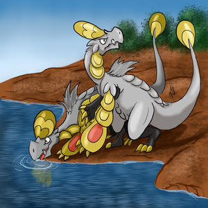 - P Es spornt sich selbst mit einem Tanz an, bei dem es kraftvoll mit den Schuppen rasselt. Mit einem Schrei signalisiert es den Kampfbeginn.