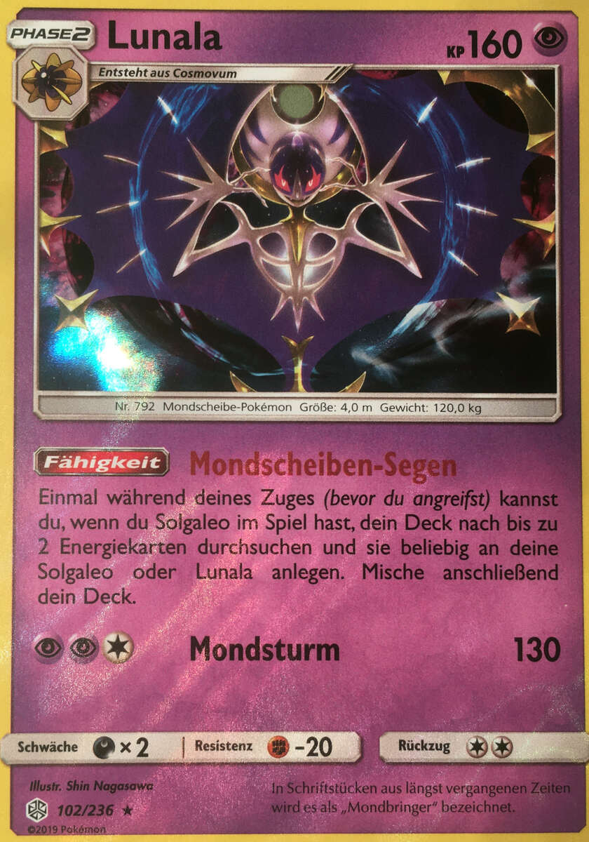 - S Es heißt, es sei die weibliche Endstufe der Entwicklungsreihe von Cosmog. Ist sein drittes Auge aktiviert, zieht es in eine andere Welt.