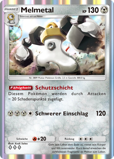 Gigadynamax-Melmetal durchführen, wodurch sich seine Form, Attacken sowie die Höhe der KP (in Abhängigkeit seines Dynamax-Levels) ändern. Diese hält, wie auch die Dynamaximierung, lediglich für drei Runden im Kampf an, sodass es nach Ende dieser Zeit wieder in seine Ursprungsform zurückkehrt.