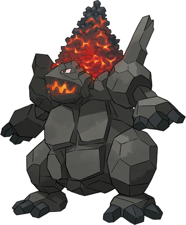- P Verärgert man dieses sanftmütige Pokémon, wird es rasend und stürzt sich mit seinem 1500 ℃ heißen Körper auf Gegner, um sie zu verbrennen.