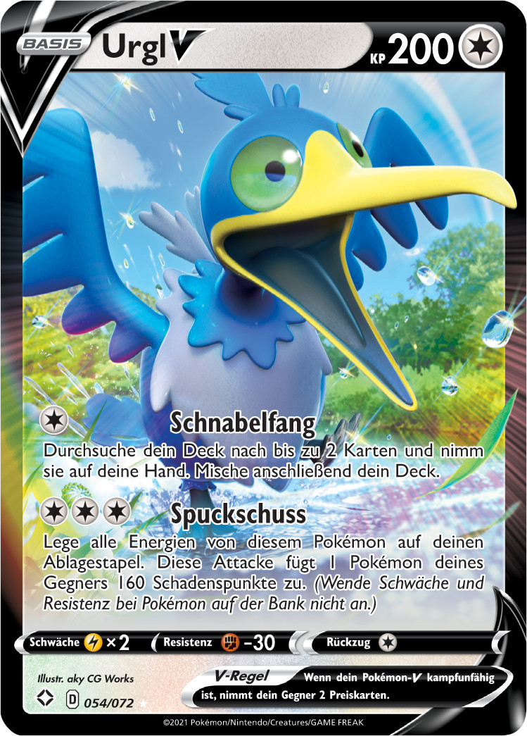 - K Seine Kehle ist eigentlich zu schmal, um das Pikachu in seinem Schnabel hinunterzuschlingen, aber Urgl macht keine Anstalten, es auszuspucken.