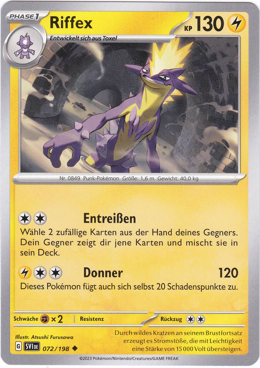 - SW Dieses Pokémon kann 15 000 V starke Elektrizität generieren. Es nimmt keinen Gegner wirklich ernst.