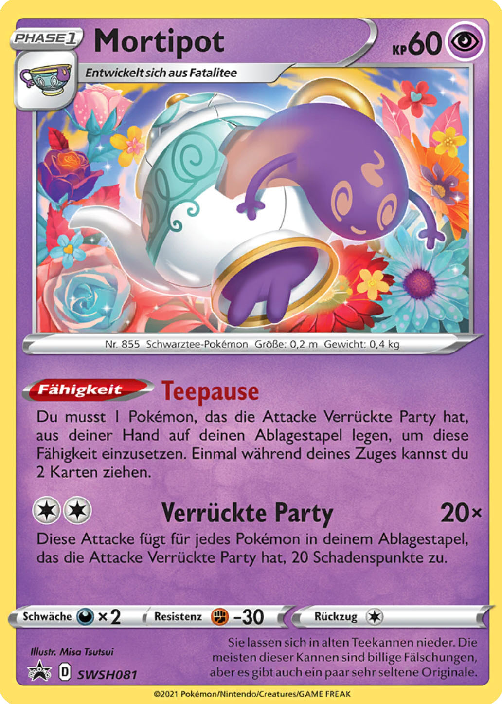 - P Von diesem Pokémon zu trinken ist gefährlich, aber köstlich. Furchtlose Feinschmecker führen sich Mortipot jeden Tag zu Gemüte.