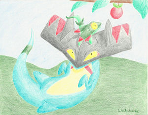 - P In der Lunge sammelt es Energie, die es dann abschießt. Es kümmert sich so lange um Grolldra, bis dieses ausgewachsen ist.