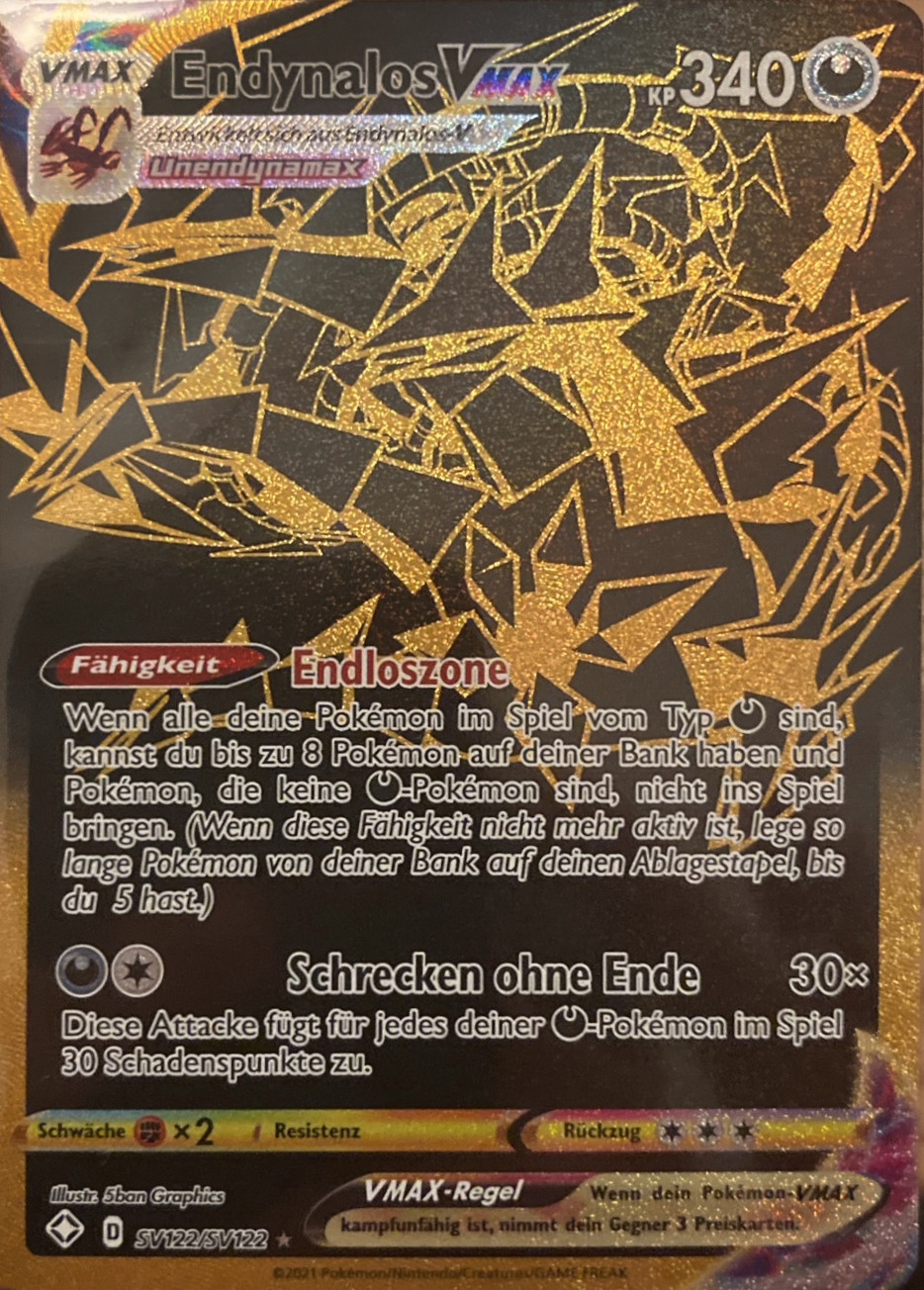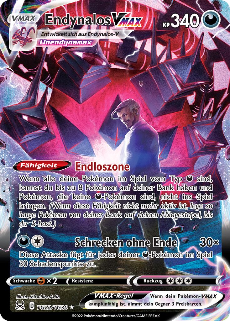 Endynalos erlernt auf diese Weise in der achten Generation keine Attacken.Diese Form tritt nur im Kampf gegen Endynalos auf. Anschließend kann Endynalos nicht mehr in diese Form umgewandelt werden. Während der Attacke Unendynastrahlen wird die Unendynamax-Form von Endynalos gezeigt.