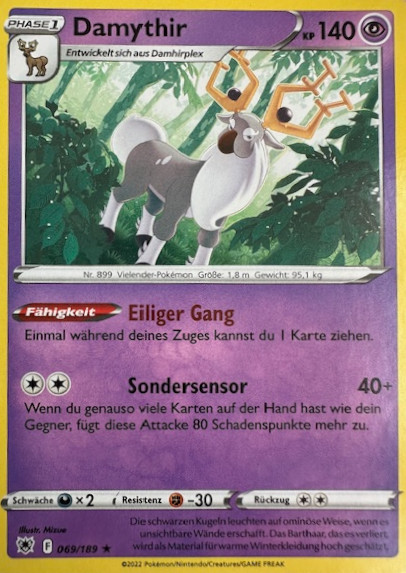 In Hisui kann sich Damhirplex zu Damythir entwickeln. Dieses Pokémon wird schon seit geraumer Zeit von den Menschen dieser Region besonders