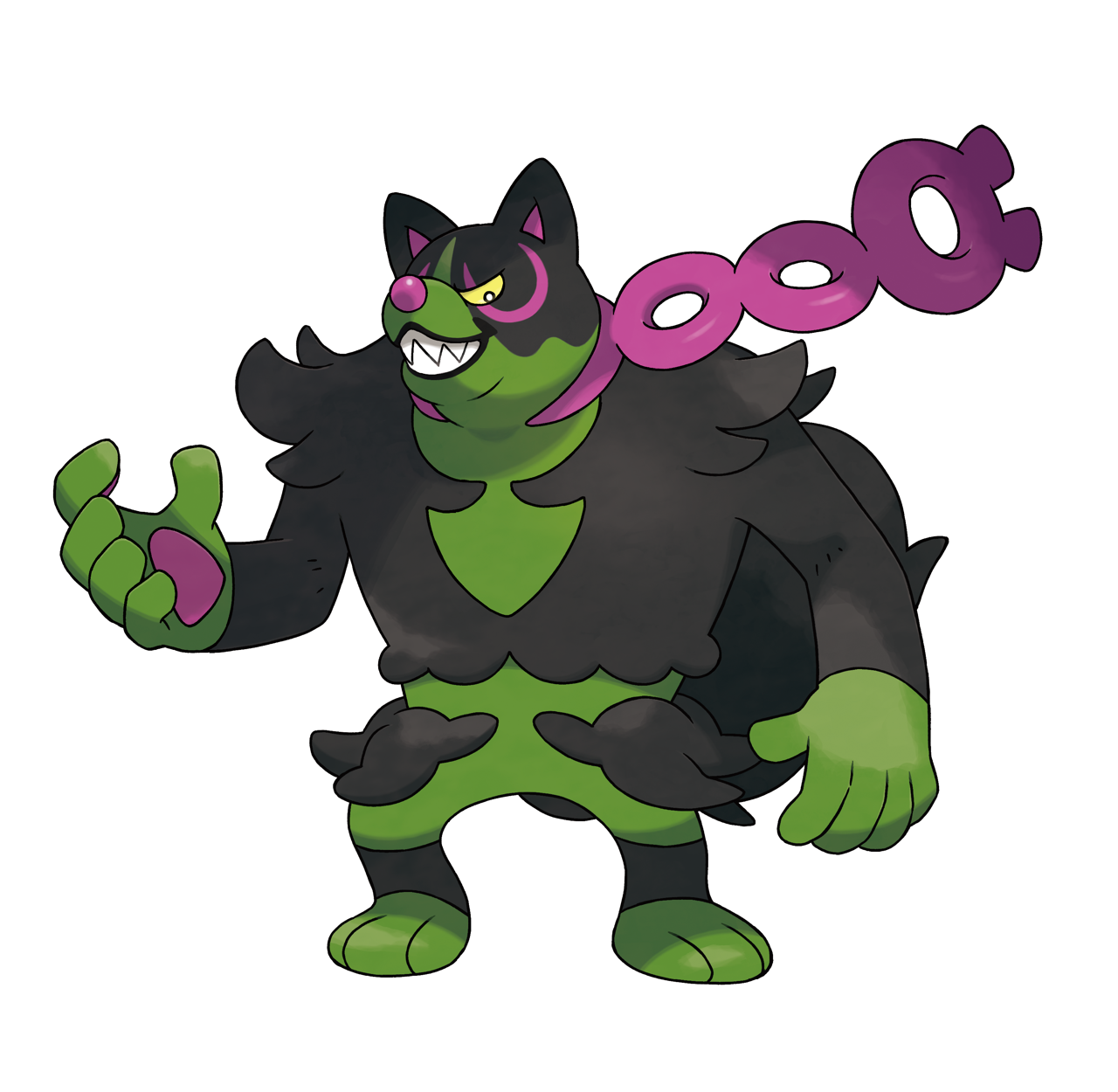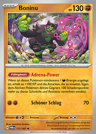 - P Diesem ungehobelten Pokémon steigt das Blut schnell zu Kopf. Es schwingt die Kette an seinem Hals, um alles zu zerstören.
