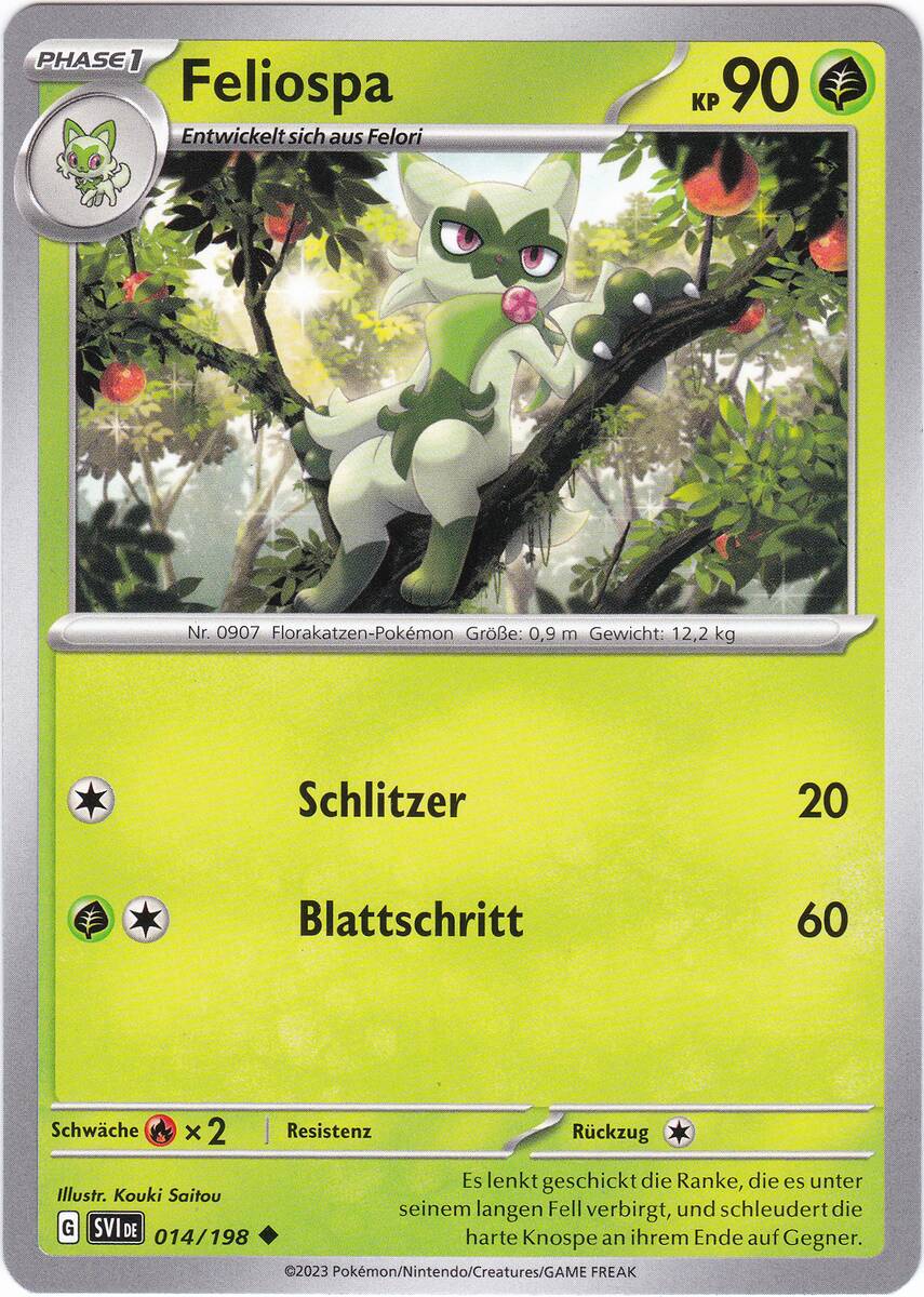 Feliospa besitzt die Pokédex-Nummer #907 und ist ein Pflanze-Pokémon der neunten Generation. Seinen ersten Auftritt in Videospielen hat es in Pokémon Karmesin & Purpur.
