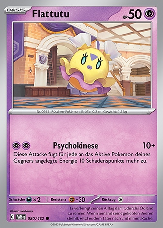 Flattutu besitzt die Pokédex-Nummer #955 und ist ein Psycho-Pokémon der neunten Generation. Seinen ersten Auftritt in Videospielen hat es in Pokémon Karmesin & Purpur.