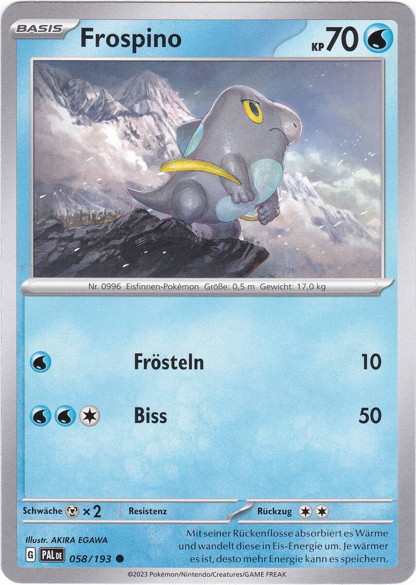 Frospino besitzt die Pokédex-Nummer #996 und ist ein Drache / Eis-Pokémon der neunten Generation. Seinen ersten Auftritt in Videospielen hat es in Pokémon Karmesin & Purpur.