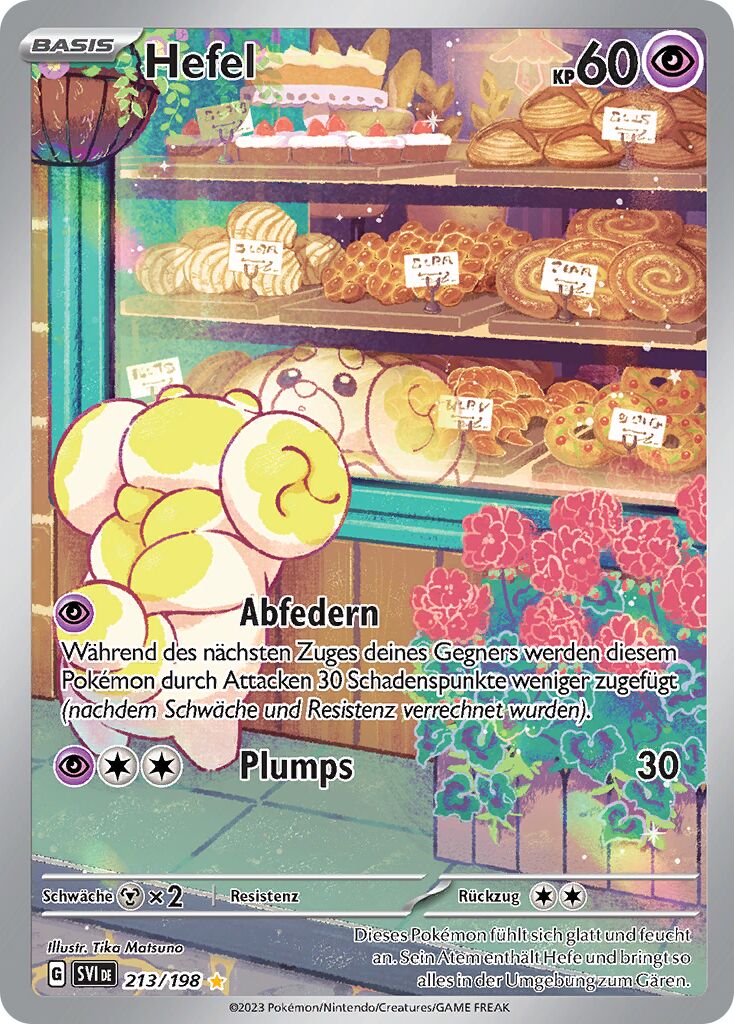 - K Dieses Pokémon fühlt sich glatt und feucht an. Sein Atem enthält Hefe und bringt so alles in der Umgebung zum Gären.