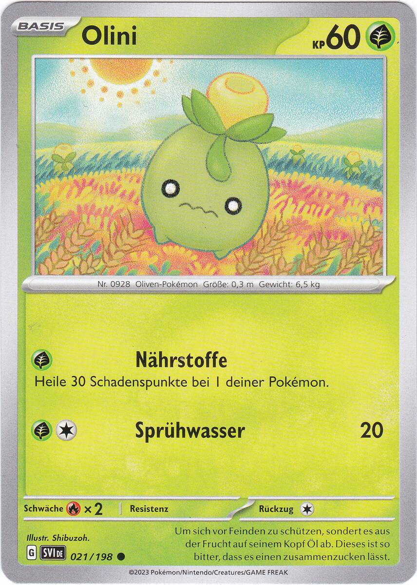 - P Olini wandelt Nährstoffe in Öl um, welches es in der Frucht auf seinem Kopf speichert. Es kommt mühelos eine Woche ohne Essen und Trinken aus.